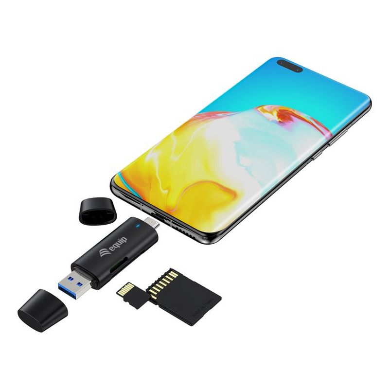 El lector de tarjetas externo EQUIP USB 3.2 te ofrece máxima velocidad y comodidad. Con su doble conexión USB-A y USB-C, podrás transferir fotos y vídeos rápidamente a cualquier dispositivo. Es compatible con tarjetas SD y MicroSD, facilitando tus tareas diarias sin complicaciones. Su diseño compacto y ligero lo hace ideal para llevar a todas partes.