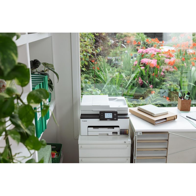 La Canon MAXIFY GX2050 es una impresora multifunción inyección de tinta a color con una resolución máxima de 600 x 1200 DPI. Ofrece velocidades de impresión de hasta 15 ppm en monocromo y 10 ppm en color, con función dúplex para imprimir a doble cara automáticamente. Su escáner de cama plana cuenta con una resolución óptica de 1200 x 2400 DPI, ideal para digitalizar documentos. Incluye funciones de copia a color, con capacidad para 99 copias y ampliación/reducción de 25-400%, además de fax a color con una velocidad de módem de 33.3 Kbit/s y memoria de 250 páginas. La conectividad se facilita mediante Wi-Fi y Ethernet, soportando estándares como Wi-Fi 5 (802.11ac), y es compatible con tecnologías de impresión móvil como Apple AirPrint y Mopria. La MAXIFY GX2050 utiliza 4 cartuchos de tinta y soporta un ciclo de trabajo máximo de 27.000 páginas/mes. Su capacidad de entrada es de 250 hojas y admite tamaños de papel hasta A4. El dispositivo presenta una pantalla LCD táctil de 2.7 pulgadas y un diseño elegante en negro y blanco, con un peso de 8.1 kg y dimensiones de 374 mm (ancho) x 510 mm (profundidad) x 260 mm (alto). Es compatible con Windows, macOS y sistemas móviles como Android e iOS.
