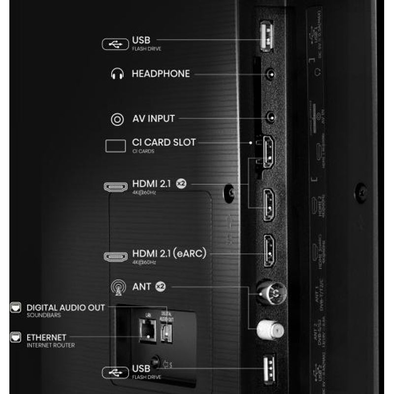 Sumérgete en una experiencia visual impactante con el Televisor LED Hisense 65E77Q Smart TV 65". Su pantalla QLED con resolución 4K Ultra HD te ofrece colores vibrantes y detalles nítidos para tus películas y series. Gracias a su Smart TV VIDAA, accede a un mundo de entretenimiento de forma intuitiva, y disfruta de un sonido envolvente con Dolby Atmos y DTS Virtual:X, ideal también para gaming gracias a sus prestaciones como ALLM y VRR.