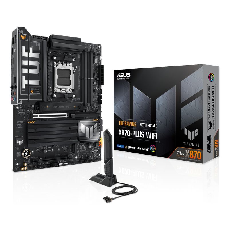 La placa base Asus TUF GAMING X870-PLUS WIFI se presenta con el socket AM5, preparado para albergar procesadores AMD Ryzen de última generación, incluyendo las series 7000 y 8000, tanto Ryzen 7 como Ryzen 9. Su formato ATX y el chipset AMD X870 garantizan una plataforma robusta para tu sistema. Admite hasta 192 GB de memoria DDR5-SDRAM a través de sus 4 ranuras DIMM, con soporte para Doble Canal, ECC y No ECC, alcanzando velocidades de hasta 8000 MHz. En cuanto al almacenamiento, ofrece compatibilidad con unidades HDD & SSD a través de interfaces M.2 y SATA III, con capacidad para hasta 6 unidades y niveles RAID 0, 1, 5, 10. La conectividad es uno de sus puntos fuertes, destacando Wi-Fi 7 (802.11be) y Bluetooth 5.4, junto a un puerto Ethernet 2.5 Gigabit. Cuenta con múltiples puertos USB, incluyendo USB4 Gen 3×2 y USB 3.2 Gen 2x2, así como un puerto HDMI. El audio se gestiona con el chip Realtek ALC1220P para un sonido envolvente de 7.1 canales. Sus dimensiones son 305 mm de ancho por 244 mm de profundidad.
