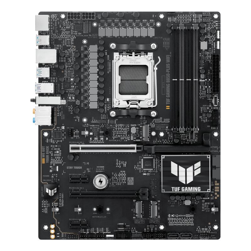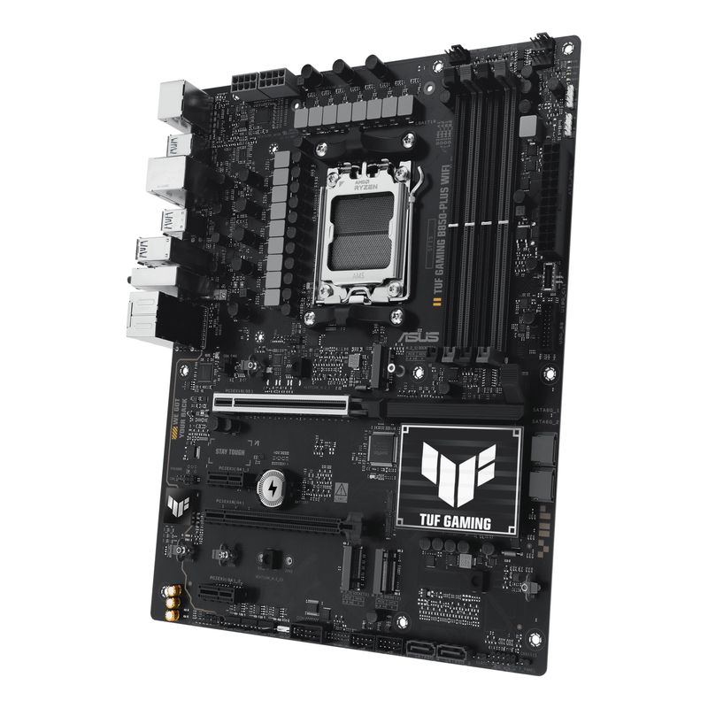 La placa base Asus TUF GAMING B850-PLUS WIFI con Zócalo AM5 te asegura compatibilidad con los últimos procesadores AMD Ryzen 7000/8000/9000 Series, ofreciendo un rendimiento excepcional. Disfruta de memoria DDR5 ultrarrápida de hasta 8000 MHz y una conectividad superior gracias al Wi-Fi 7 y Ethernet de 2.5 Gigabit, ideal para juegos y streaming sin interrupciones. Amplía tu almacenamiento con sus múltiples ranuras M.2 para una velocidad asombrosa.