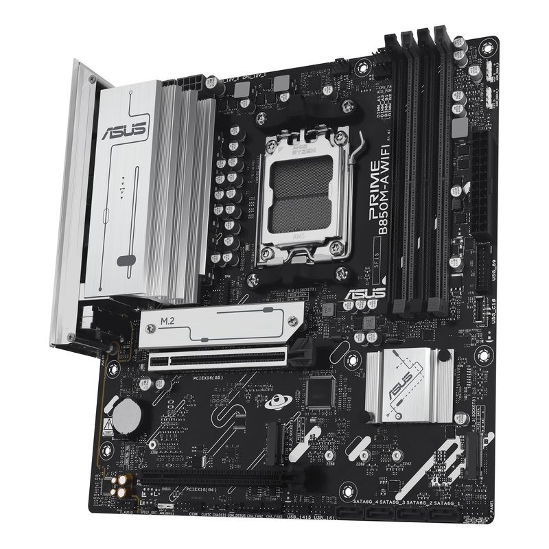 La placa base Asus PRIME B850M-A WIFI con Socket AM5 es ideal para los últimos procesadores AMD Ryzen (7000/8000/9000 Series), garantizando un rendimiento superior. Disfrute de memoria DDR5 ultrarrápida (hasta 256GB y 8000MHz) para una multitarea fluida, y conectividad avanzada con Wi-Fi 6E y Ethernet 2.5 Gigabit para una navegación y juego sin interrupciones. Además, sus opciones de almacenamiento M.2 y SATA III con RAID ofrecen gran flexibilidad y velocidad.