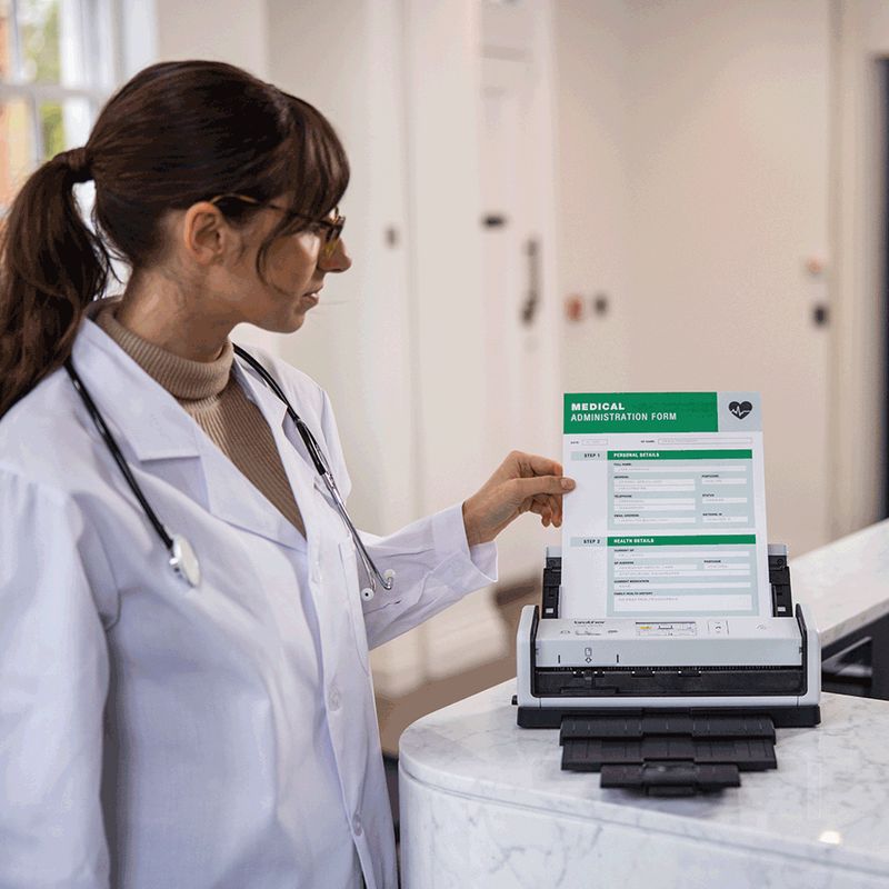 El Brother Escáner Documentos ADS1800 ADS1800WUN1, con referencia BRT2003, redefine la digitalización de documentos. Su tamaño máximo de escaneado alcanza los 215,9 x 355,6 mm, con una impresionante resolución óptica de 1200 x 1200 DPI. La velocidad de escaneo en el alimentador automático de documentos (ADF) es de 20 ppm en formato A4 y blanco y negro, y soporta escaneado dúplex. Este escáner en color blanco cuenta con una pantalla LCD a color de 7,11 cm (2.8") y control táctil. Permite escanear a FTP, PC, SMB y es compatible con controladores SANE, TWAIN, WIA. Su capacidad de alimentador automático es de 20 hojas, manejando diversos tipos de soportes como tarjetas de visita, papel normal, tarjeta de plástico, papel reciclado, papel grueso y papel fino, con pesos de 51,8 - 128 g/m². La conexión incluye USB Tipo C (USB 2.0) y Wi-Fi (compatible con 802.11b/g/n), con seguridad WPA3-SAE entre otros. Su peso es de 1,49 kg y sus dimensiones son 158 x 200 x 369 mm.