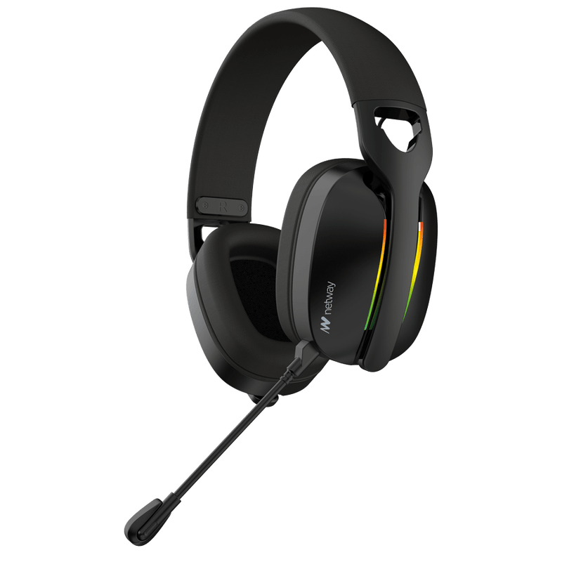 Disfruta de una experiencia gaming inmersiva con los auriculares NETWAY HX440. Su triple conectividad (2.4 GHz inalámbrico, Bluetooth 5.0 y cableado) te ofrece máxima versatilidad y baja latencia. Comunícate claramente con su doble micrófono y disfruta de un diseño confortable con diadema ajustable y vibrante iluminación RGB. Su batería recargable te da libertad para jugar sin interrupciones.