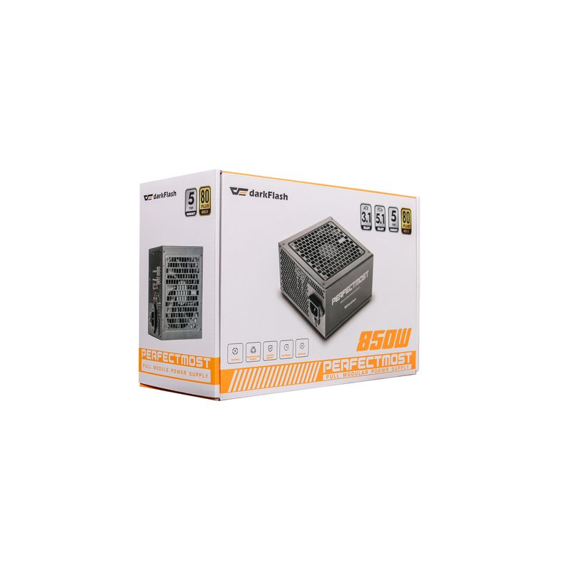 La Fuente de Alimentación ATX Darkflash PMT850 Negra ofrece una potencia total de 850 W, ideal para sistemas PC de alto rendimiento. Su certificación 80 PLUS Gold asegura una eficiencia energética excepcional, minimizando el desperdicio de energía y reduciendo la generación de calor. Diseñada con el factor de forma ATX, esta fuente se integra sin problemas en la mayoría de las configuraciones de ordenador, garantizando una instalación sencilla y una compatibilidad amplia. Su acabado en color negro le confiere una estética sobria y profesional, perfecta para cualquier tipo de montaje. La calidad de los componentes internos de Darkflash asegura un funcionamiento estable y duradero, proporcionando la energía necesaria para todos tus dispositivos de forma fiable. Esta fuente de alimentación es una solución robusta para usuarios que buscan rendimiento y eficiencia sin renunciar a la facilidad de uso.