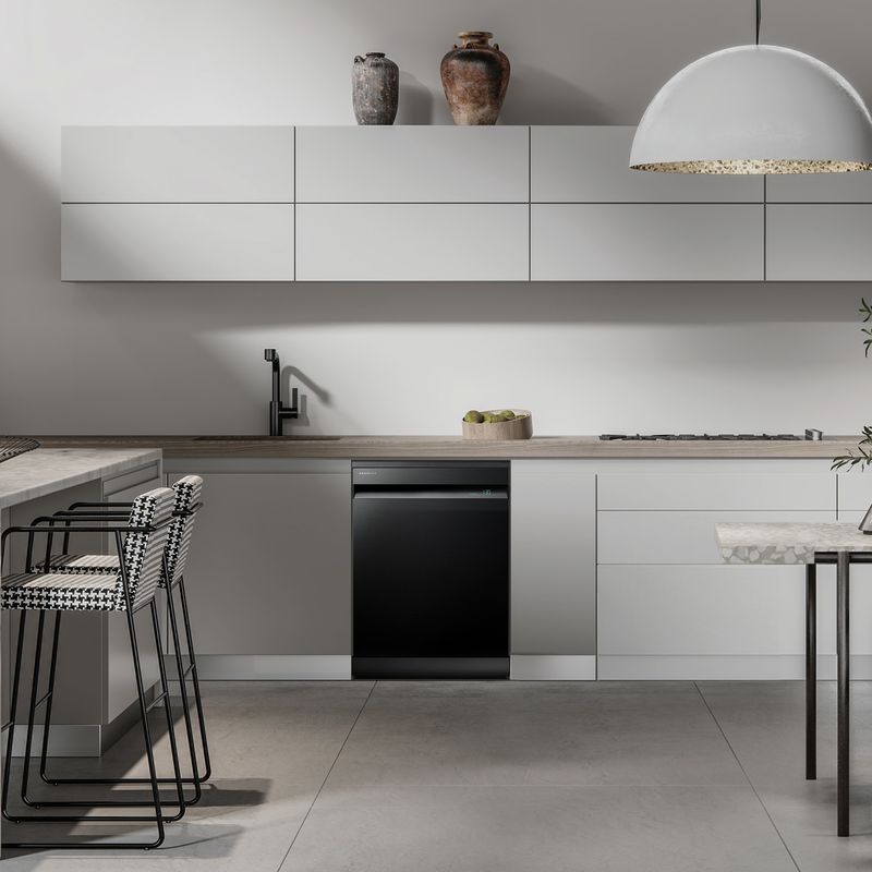 El lavavajillas SAMSUNG DW60A8050FB/ET te brinda una impresionante capacidad para 14 cubiertos, perfecto para familias numerosas. Disfruta de la tranquilidad en tu hogar gracias a su ultra bajo nivel de ruido de solo 42 dB. Además, su alta eficiencia energética clase C y bajo consumo de agua (9,8 L) cuidan el medio ambiente y tu bolsillo. Contrólalo cómodamente desde tu móvil con su conectividad Wi-Fi, y experimenta un secado impecable con la función de apertura automática de puerta.
