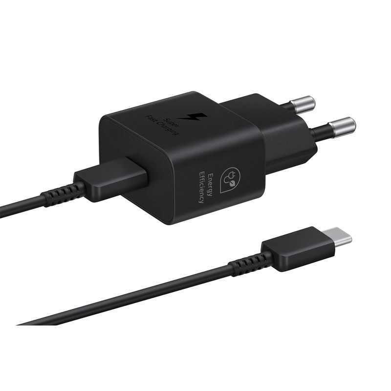 Recarga tu smartphone a toda velocidad con el cargador rápido SAMSUNG de 25W con tecnología Super Fast Charging. Su puerto USB-C asegura máxima compatibilidad y su cable de 1m te da gran flexibilidad. Además, es ultraligero (51,6g) y con voltaje universal (100-240V), perfecto para llevar contigo a cualquier parte y cargarlo cómodamente.