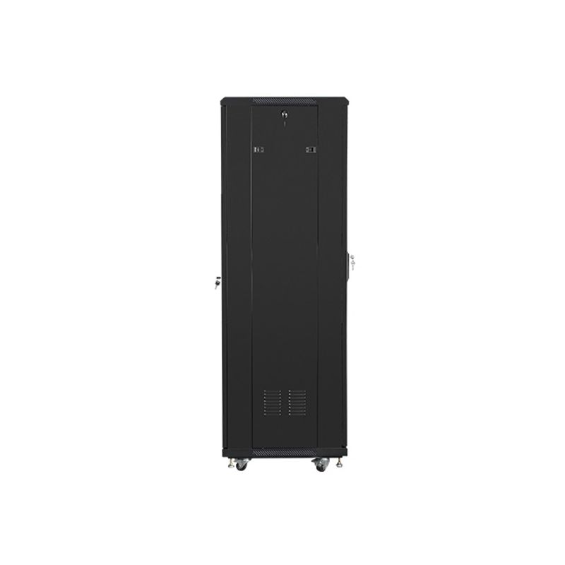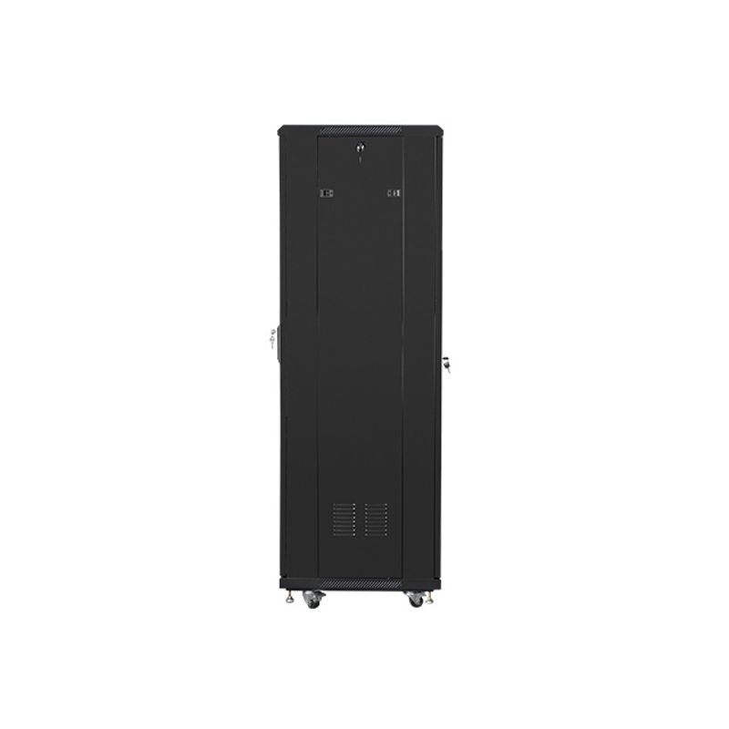 El Armario Rack LANBERG 19" 37U 600x600 FLAT PACK BLACK NEGRO (FF01-6637-12B) es un bastidor independiente robusto, diseñado para albergar hasta 37U de equipamiento. Soporta una capacidad máxima de peso de 800 kg, asegurando la estabilidad de tus dispositivos. Su construcción incluye paneles laterales desmontables y puertas delantera y trasera con cerradura, además de bloqueo en el teclado, proporcionando alta seguridad. La estructura es de acero y la puerta delantera de vidrio templado, con un acabado en negro que se integra en cualquier entorno. Incorpora rieles de rack con un grosor de 2 mm y patas ajustables junto con ruedas de reenvio para facilitar su posicionamiento y movilidad. Las dimensiones son 600 mm de ancho, 600 mm de profundidad y 1826 mm de altura, con una profundidad de montaje máxima de 52 cm. Incluye 2 ventiladores para un enfriamiento activo y cumple con normativas como ANSI/EIA RS-310-D. El producto se entrega en formato FLAT PACK con manual de usuario y tuercas incluidas, ofreciendo una solución completa y práctica.