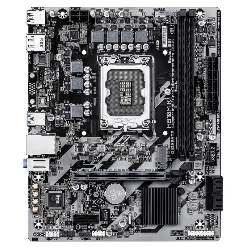 GIGABYTE Intel H810M K Placa Base – Procesadores Intel Core Ultra (Serie 2), VRM de 3+1+2 fases, hasta 6400 MHz DDR5, 1 x M.2 PCIe 4.0, LAN 1 GbE, US