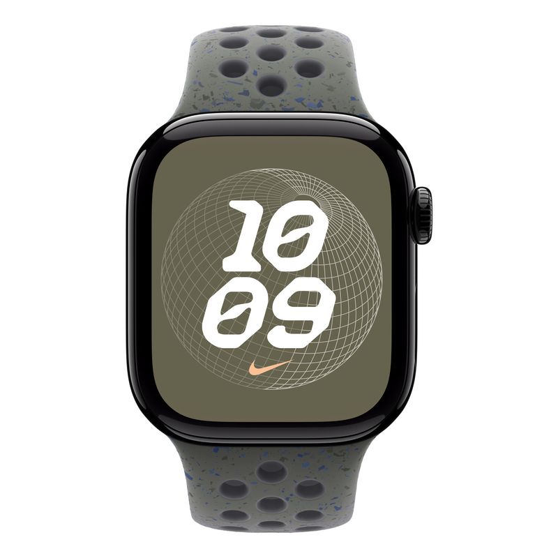 La correa Nike Sport Band de APPLE en color Caqui está diseñada con Fluoroelastómero, ofreciendo una comodidad y resistencia excepcionales para tu día a día y tus entrenamientos, adaptándose perfectamente a muñecas de 150 a 200 mm. Su hebilla de Aluminio garantiza un cierre seguro y ligero. Además, es totalmente compatible con los Apple Watch de 38mm, 40mm y 41mm, permitiéndote actualizar tu estilo fácilmente.