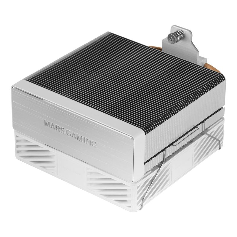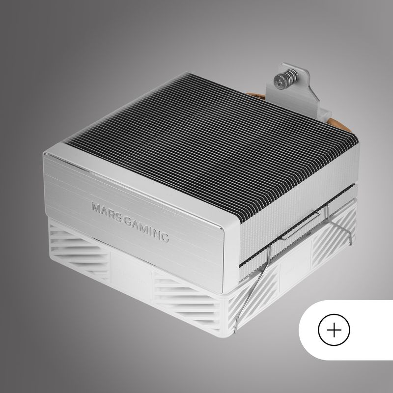 El Ventilador con Disipador de CPU MARS GAMING MCPUX4W es una solución de refrigeración de aire de alto rendimiento en un llamativo acabado blanco. Con un diámetro de ventilador de 12 cm y tecnología PWM, opera entre 800 y 2000 RPM, logrando un flujo de aire de hasta 78 cfm. Su diseño avanzado incluye 4 tubos disipadores de calor de cobre y aluminio, soportando un TDP de hasta 230W. El rodamiento hidráulico asegura un funcionamiento prolongado con un MTTF de 60000 horas, y su nivel de ruido se mantiene entre 9 y 28 dB. Con unas dimensiones de 120 x 68 x 154 mm y un peso de 551 g, es compatible con múltiples sockets como LGA 1700, AM4, y AM5. Viene con pasta térmica y kit de montaje.