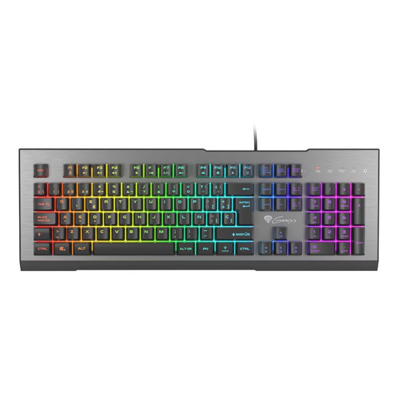 El TECLADO GAMING GENESIS RHOD 500 RGB de NATEC GENESIS se presenta en un formato completo (100%) con 104 teclas y distribución QWERTY en español. Su tecnología de conectividad es alámbrica a través de USB tipo A, garantizando una conexión estable y rápida, ideal para el uso recomendado en juegos. El tipo de retroiluminación es LED RGB con múltiples colores y ajuste, que podrás personalizar a tu gusto. El teclado incorpora teclas multimedia y la función WinLock, además de antifantasma para evitar pulsaciones perdidas en momentos críticos. Los interruptores son de membrana con una fuerza de acción de 55 g y una vida útil de 10 millones de caracteres. Su construcción combina ABS y metal, con un diseño de teclado derecho y altura ajustable. El cable tiene una longitud de 1,8 m. Las dimensiones del teclado son 466 x 159 x 36 mm y pesa 631 g. Compatible con Windows (XP a 11), Linux y Android. No incluye ratón.