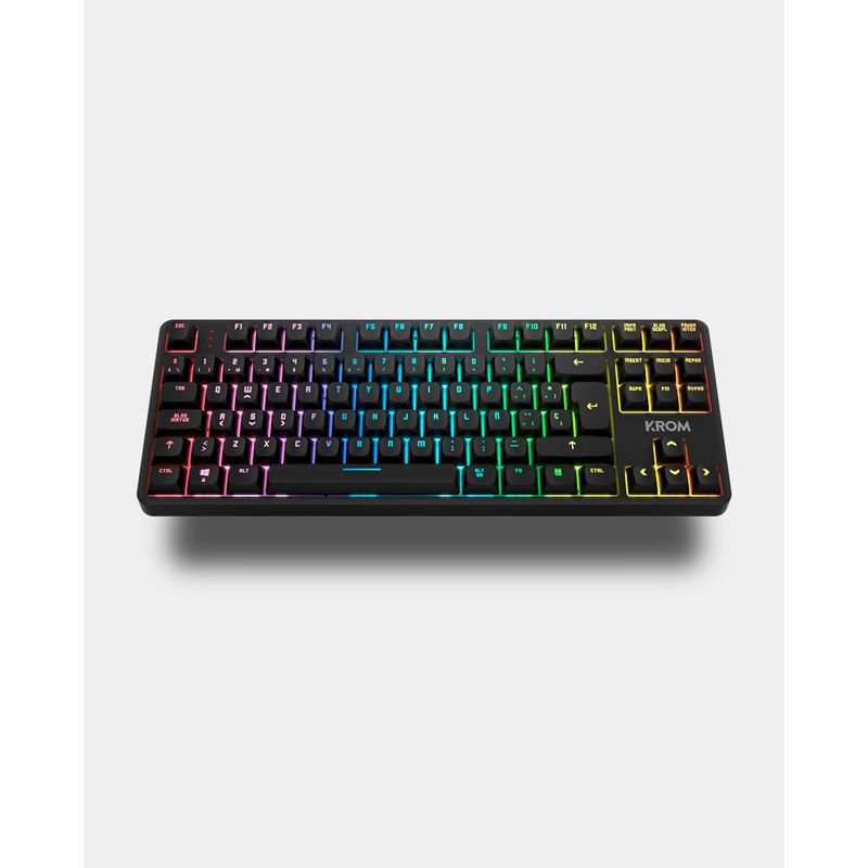 El teclado KROM KERNEL PRO ofrece máxima versatilidad con conectividad inalámbrica triple (USB, RF, Bluetooth) y alámbrica, ideal para cualquier setup. Sus switches mecánicos Outemu Red aseguran precisión y respuesta rápida en juegos. Disfruta de su formato Tenkeyless que ahorra espacio, iluminación RGB vibrante y hasta 10h de autonomía.