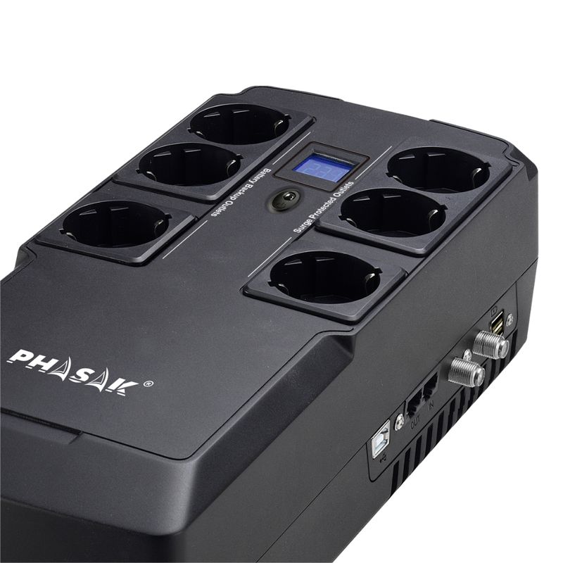 El SAI Kryptos PH 9478 de Phasak, con tecnología de línea interactiva, te ofrece una robusta protección de 800VA/480W y hasta 15 minutos de autonomía, ideal para salvaguardar tus equipos y asegurar que puedas guardar tu trabajo tranquilamente ante cualquier corte eléctrico. Incluye 6 salidas AC Tipo F para conectar múltiples dispositivos y su diseño compacto se adapta perfectamente a tu espacio.