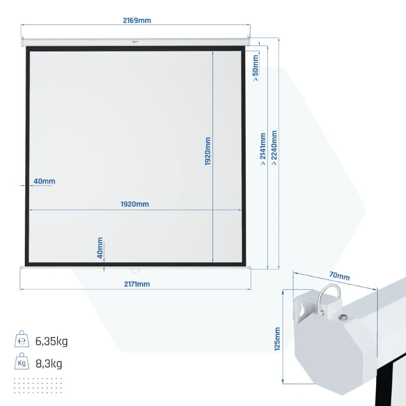 La pantalla de proyección IGGUAL PSIMS200 transforma tus espacios con su impresionante tamaño de 200x200 cm (111" en diagonal), ofreciendo una experiencia visual envolvente para tus presentaciones o sesiones de cine en casa. Su práctico formato cuadrado 1:1 asegura máxima versatilidad con cualquier contenido. Con su mecanismo manual, desplegarla y recogerla es muy sencillo, y su montaje mural o de techo la mantiene siempre disponible y discreta, optimizando tu espacio.