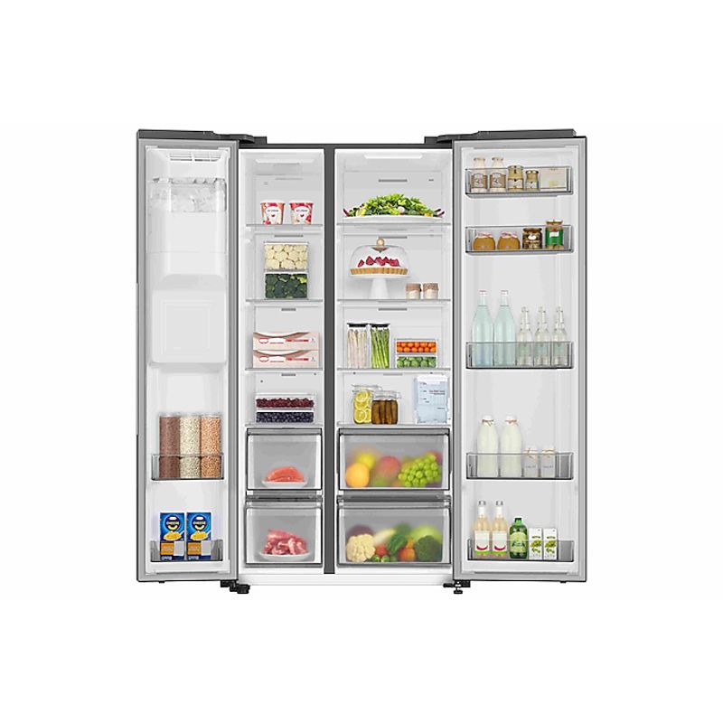 El frigorífico americano SAMSUNG Smart RS68CG885DS9EF destaca por su impresionante capacidad de 634L, ideal para grandes familias, y la comodidad de su dispensador de agua y hielo. Conéctalo vía Wi-Fi para un control inteligente y disfruta de su eficiencia energética clase D, que optimiza el consumo. Su funcionamiento ultrasilencioso de 35 dB asegura tranquilidad en tu hogar.