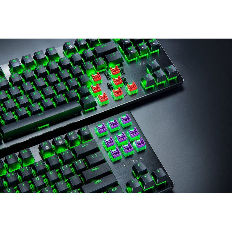 El teclado Razer Huntsman V3 X Tenkeyless te ofrece una ventaja competitiva. Sus Razer Clicky Optical Purple Switches garantizan velocidad y precisión inigualables. Su diseño compacto optimiza tu espacio, mientras que la tecnología antifantasma asegura que cada acción se registre sin fallos, crucial en cada partida. La vibrante retroiluminación LED RGB, además, añade un toque personal a tu configuración.