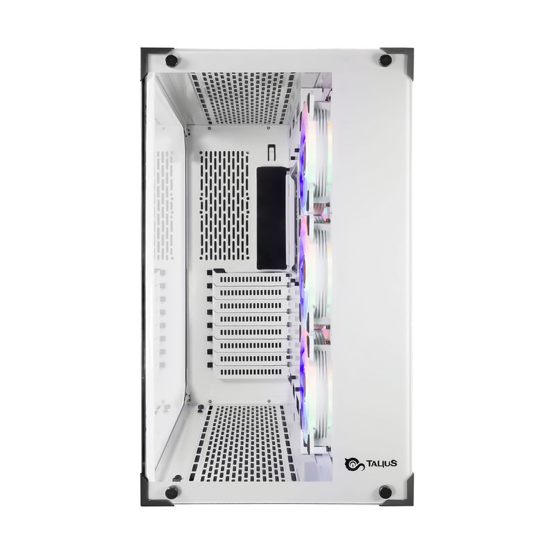 Descubre la caja TALIUS Cronos Frost RGB, un chasis gaming diseñado para rendir. Disfruta de una estética impresionante con su cristal templado y la vibrante iluminación RGB, que aporta personalidad a tu setup. Su avanzado sistema de refrigeración con tres ventiladores de 120mm preinstalados garantiza un rendimiento óptimo de tus componentes. Además, ofrece conectividad USB 3.0 para transferencias rápidas y una fácil gestión de cables para un montaje cómodo y ordenado.
