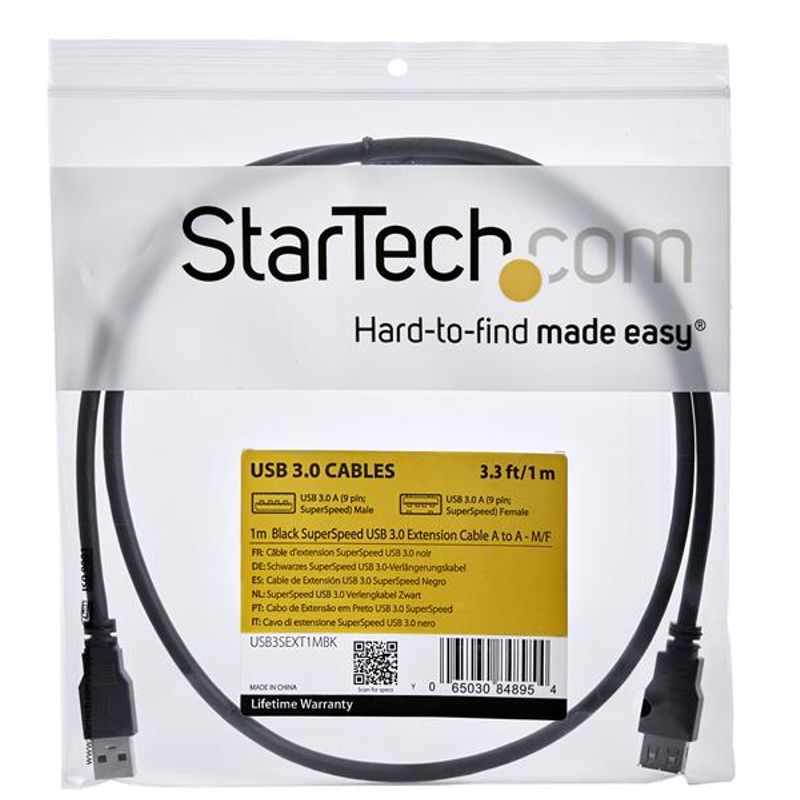 Este Cable de Extensión USB 3.0 de 1 Metro STARTECH (RefId: USB3SEXT1MBK) te proporciona una solución eficaz para aumentar el alcance de tus conexiones USB. Compatible con el estándar USB 3.2 Gen 1 (3.1 Gen 1), ofrece velocidades de transferencia de hasta 5 Gbit/s, lo que se traduce en transferencias de datos muy rápidas. Cuenta con un conector USB A Macho en un extremo y un USB A Hembra en el otro, ambos con contactos chapados en níquel para asegurar una conexión óptima y resistente a la corrosión. Su color negro y su longitud de 1 metro lo hacen discreto y versátil para cualquier entorno. El cableado tiene un calibre AWG 28, garantizando la integridad de la señal. Este producto de STARTECH es Plug and Play, lo que significa que no requiere instalación de software adicional. Las dimensiones del paquete son 190 mm de ancho, 226 mm de profundidad y 20 mm de altura, con un peso de 56 g, y el cable pesa 48 g. Incluye certificaciones como CE, REACH y RoHS, asegurando su conformidad con normativas de seguridad y medioambiente.