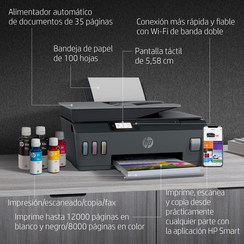 Descubre la HP Smart Tank 655 de HEWLETT PACKARD, tu aliada multifunción perfecta. Disfruta de una impresión a color de alta resolución (4800 x 1200 DPI) con un sistema de tanque de tinta que te ofrece gran autonomía y ahorro. Su conectividad Wi-Fi, compatible con HP ePrint y Apple AirPrint, te permite imprimir fácilmente desde cualquier dispositivo, y el ADF facilita el escaneo y copiado de múltiples documentos.